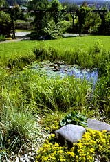 Für den Garten sind Wasserstellen wertvolle Gestaltungselemente. Sie bieten Lebensräume für besondere Pflanzen und Tiere, dienen Singvögeln als Tränke und schaffen eine angenehme Atmosphäre. Mit schwarzer Kunststoffplane lassen sich relativ einfach individuelle Wassergärten schaffen, die bei fachgerechter Ausführung viele Jahre Freude machen. Auch spezielle Kunststoffbecken haben sich beim Teichbau bewährt. Allerdings geben die starren Becken - anders als die flexiblen Teichfolien - bestimmte Formen vor. Beide Materialien müssen gleichermaßen richtig bearbeitet und in den Boden eingebaut werden, damit schöne und langfristig dichte Wasserstellen entstehen. Wir beraten Sie gerne. |
